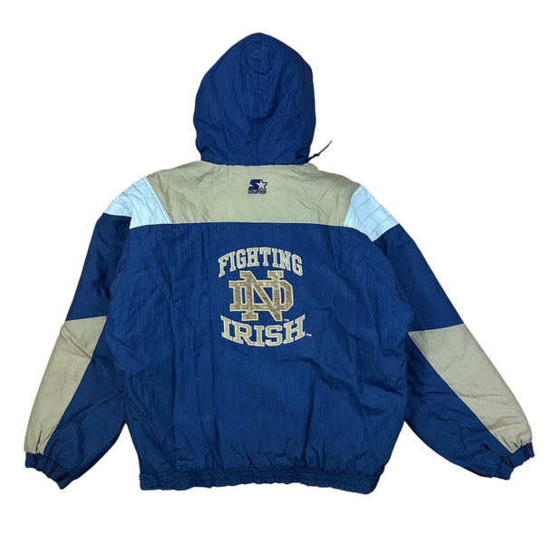 Mens Vintage 1990s Notre Dame Fighting Irish Starter Quarter Zip Puffer Jacket Size L-XL