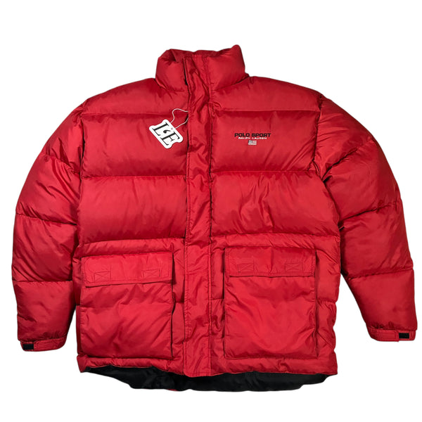 Mens Vintage Polo Sport 90s Goose Down Jacket Ralph Lauren Polo, Size S Red Color
